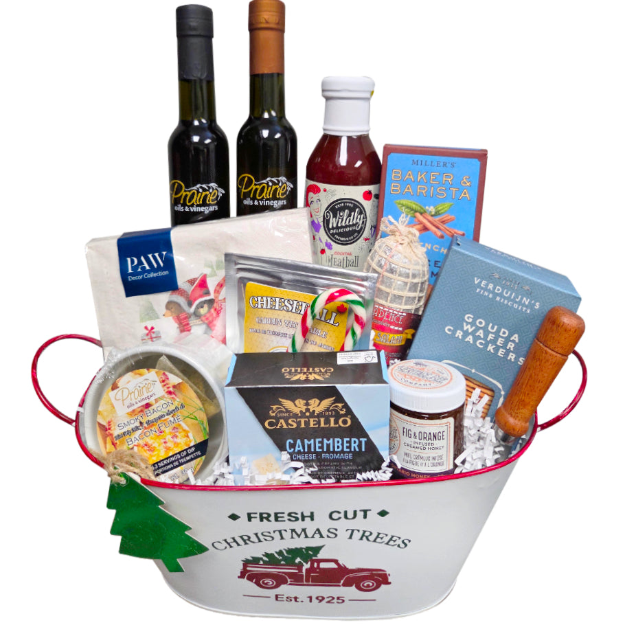 This beautiful vintage-style tin sets the tone for embracing a slow pace of a traditional, rustic holiday in the countryside. Simple flavours meet the joy of a fantastic assortment of appetizer ingredients - items that are easy to prepare and give that home-made quality whether you are entertaining a large group or just needing a basket of goodies to dig into yourself!