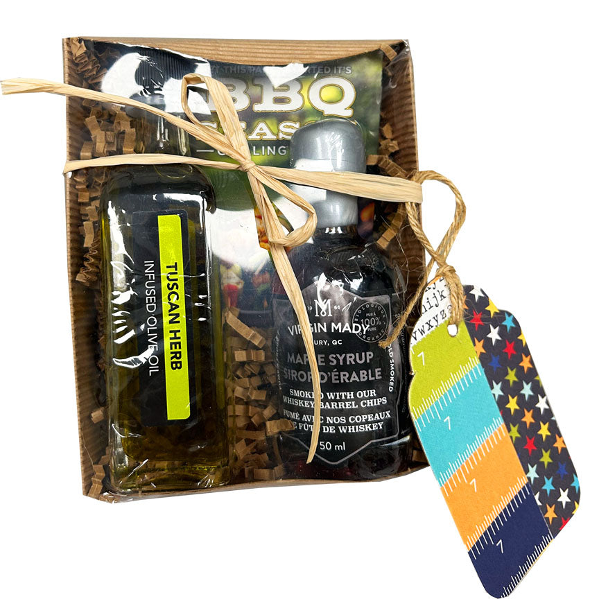 OK, stay with us here, this savoury marinade comes with a syrup. We said it! It is a SAVOURY marinade, but the maple syrup does just the trick to balance the richness from the Garlic Olive Oil and the flavourful punch of the grilling spices. There's a hint of heat on this one and, oh my word, it is heavenly with steak! Take it vegetarian by soaking a few portobello mushrooms or thickly sliced egg plants with this one... actually, this would be amazing brushed over halved and scored sweet potatoes, too... We could go on... Comes with: