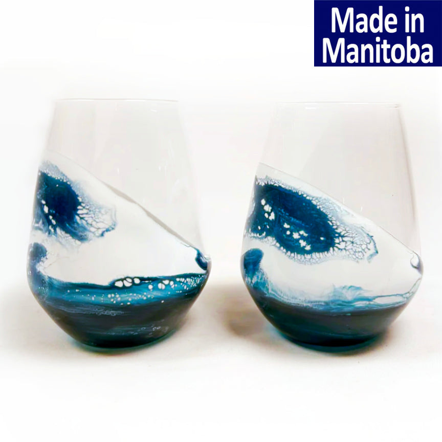 Resin Coated Entertaining Glasses - These 15 oz entertaining glasses are one-of-a-kind pieces of functional art. Super durable, these glasses have a nice, sturdy weight in the hand and can be used for wine, cocktails, water, iced tea and so many other beverages. Each glass may vary slightly in size and shape as the glass is made by hand, making this a truly one-of-a-kind gift!