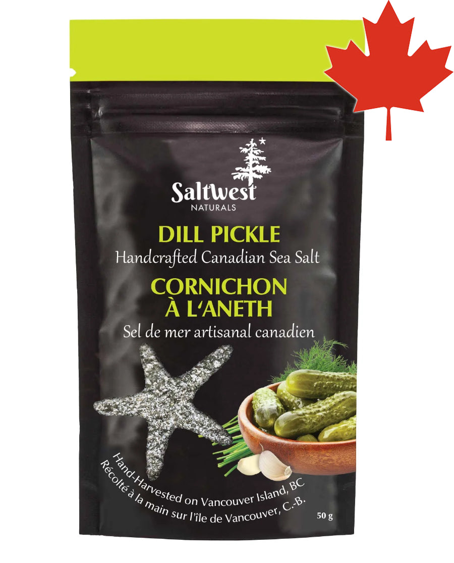 NEW from SaltWest Naturals - Dill Pickle flavour-infused sea salt. Amazing on popcorn, season your fish or seafood, elevate your pasta or cucumber salads. A trendy pop of fresh, dill and sour pickle flavour!