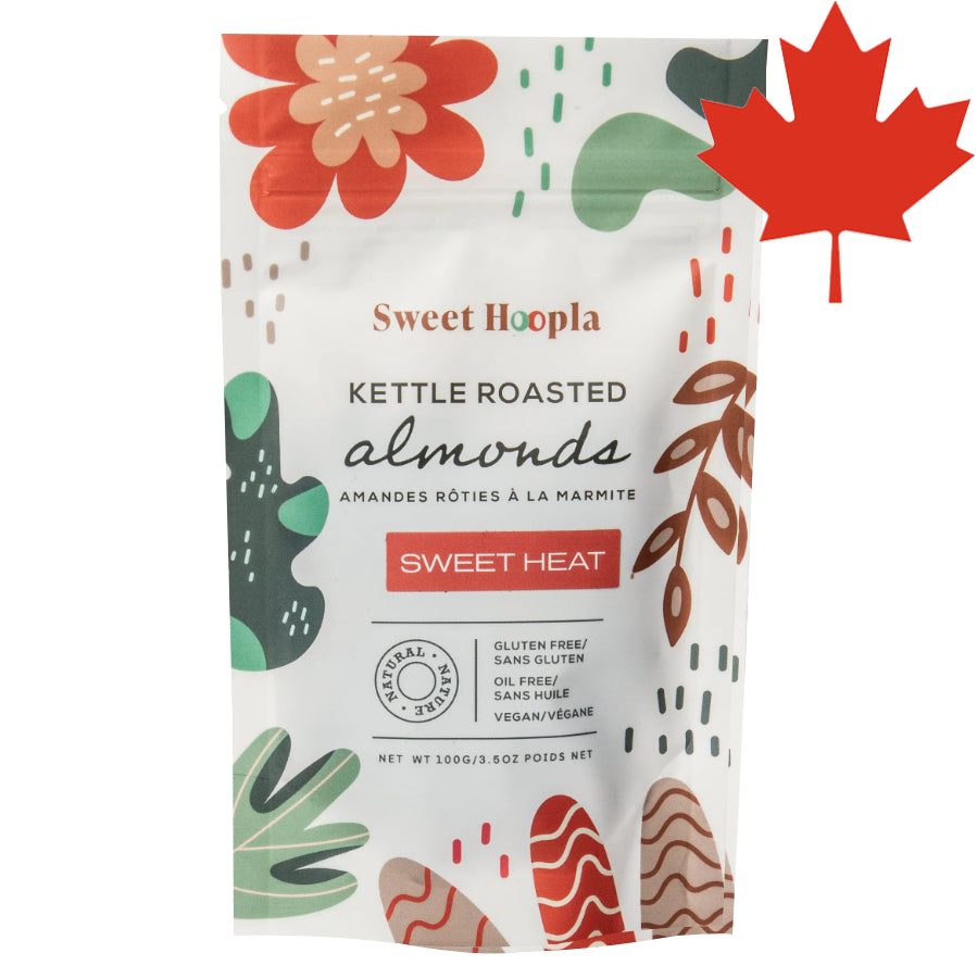 Sweet Hoopla roasts Bavarian-style almonds from their home base in Vernon, BC, Canada. They specialize in kettle-roasted, candied almonds. Starting out as a featured favourite at their local farmers markets, they realized that there was an appetite for people to indulge their sweets cravings with something different than chips or sweet candies.