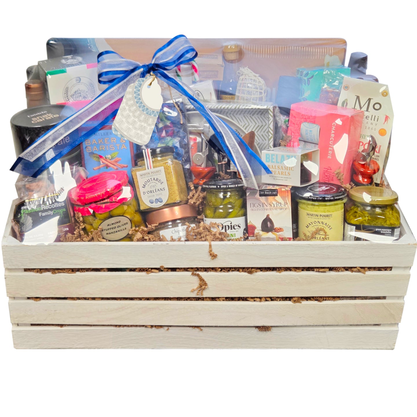 When you feel like celebrating, this is the gift crate that is sure to make a statement. It is positively filled to the brim with ready to serve treats from breadsticks, crackers, meat, cheese, olives to deliciously seasoned nuts and intensely flavoured chocolate. You may need many hands to lift this one - and many happy friends and family to share it with! Almost all items are ready to just open and enjoy, so feel free to order this one to cater your get together and treat everyone to a HUGE array of gourmet delectables they'll never forget!
